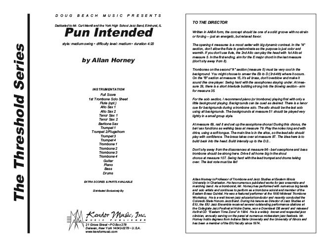 Here's the perfect combination of a catchy melody, great scoring and all the essential swing figures that medium level groups need to know. A written or ad lib solo section is included for alto and trombone. 2nd Trumpet doubles on flugelhorn, and an optional flute part is included. Duration 4:20. Available in SmartMusic.