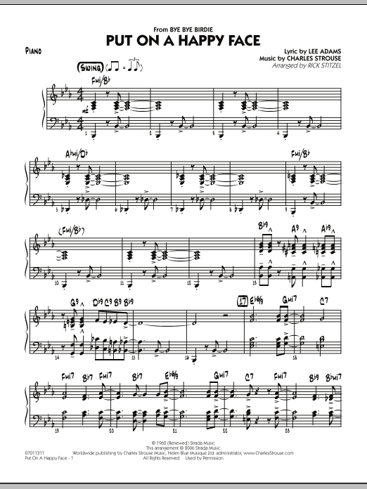 From the Broadway musical Bye Bye Birdie, this well-known tune works great in a jazz setting. Written in a medium uptempo swing style, Rick Stitzel uses skilled ensemble scoring plus a great groove to create a chart that your band (as well as the audience) is sure to enjoy. A quartet of alto, tenor, trumpet and trombone is featured on the head, and solos are included for alto and trumpet.