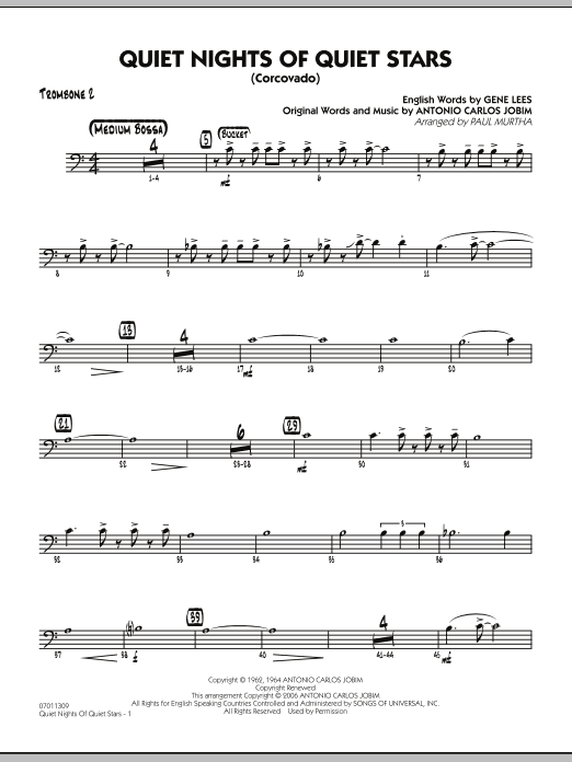 Although Jobim penned a wealth of great Latin tunes, this standard is unquestionably one of his best. Paul Murtha's smooth and silky chart alternates between the saxes and trumpets on the melody with solo space provided for alto sax. Although written with young players in mind, even advanced groups will sound great playing this exceptional arrangement.