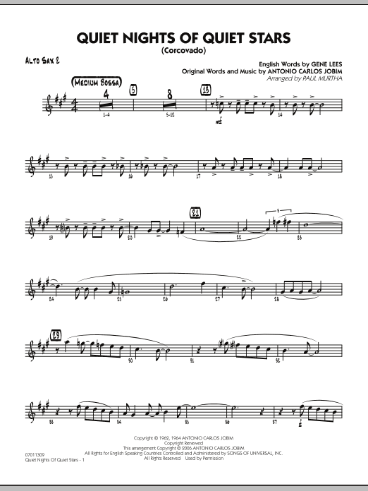 Although Jobim penned a wealth of great Latin tunes, this standard is unquestionably one of his best. Paul Murtha's smooth and silky chart alternates between the saxes and trumpets on the melody with solo space provided for alto sax. Although written with young players in mind, even advanced groups will sound great playing this exceptional arrangement.