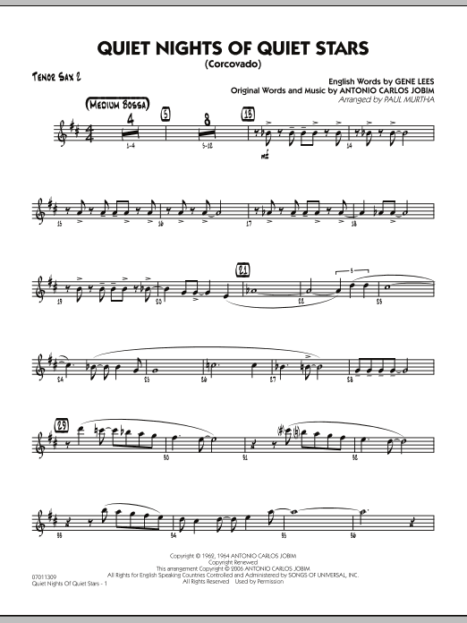 Although Jobim penned a wealth of great Latin tunes, this standard is unquestionably one of his best. Paul Murtha's smooth and silky chart alternates between the saxes and trumpets on the melody with solo space provided for alto sax. Although written with young players in mind, even advanced groups will sound great playing this exceptional arrangement.