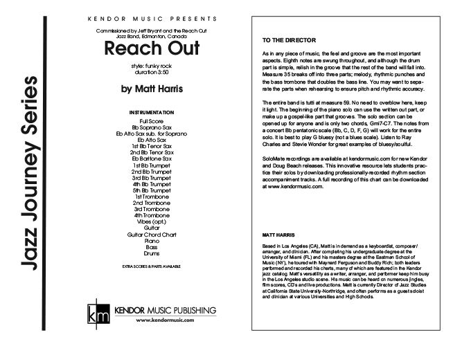 This funky rock tune includes conservative ranges, fully written-out rhythm section parts, and repetitive rhythms which makes it playable by advancing groups through professionals. The piano has a solo, and then is followed by the solo section that includes chord changes in all parts. Scoring calls for 5 trumpets, optional vibes, and SATTB saxophones, however an optional alto part is provided for the soprano part. A guitar chord charts is included in each set. Duration 3:50.