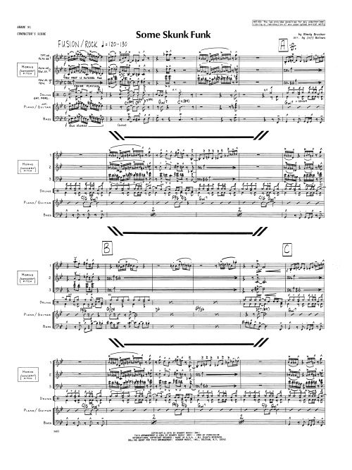 As recorded on The Brecker Brothers album (Arista 4037) of 1975, this adventurous fusion tune features highly-charged syncopations, intricate figures and open solo space for any player(s). Use of the optional percussion part will enhance any performance, and rhythm section parts are partially notated with chords cued.