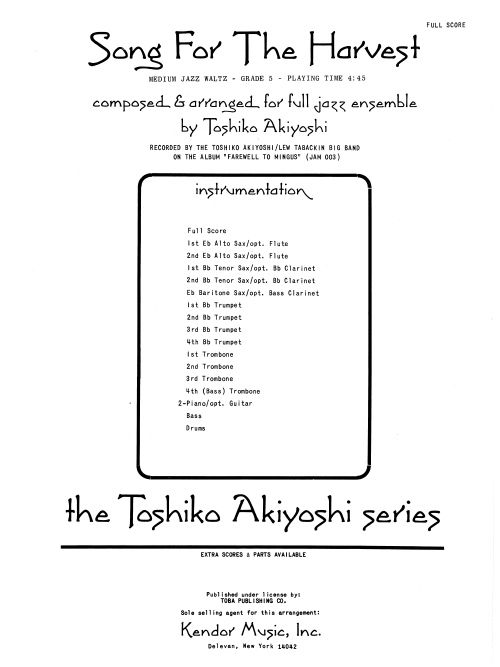 Recorded by the Toshiko Akiyoshi-Lew Tabackin Big Band on their Grammy-nominated album Farewell To Mingus, highlights include solos for bari (or tenor) sax and trombone, brass plungers, and an optional cut for bands who'd rather avoid the woodwind doubles. A short drum solo and a dramatic build from mezzo-piano to fortissimo in the final bars gives it a strong finish. Duration 4:45.