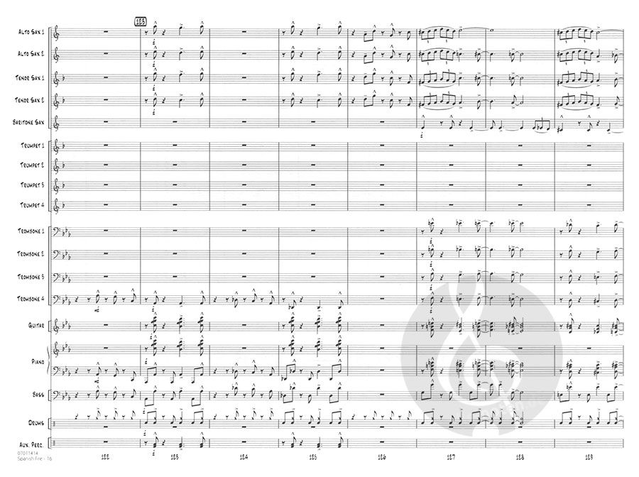 After an initial explosion of brass, the rhythm section settles into a 'Rumba Flamenco' groove and the chart really starts to cook. The saxes get a workout on this one supported by hot brass lines. Includes solo space for tenor sax.