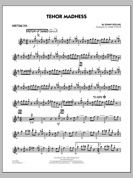 Using tenor and baritone saxes to do the heavy lifting, here is a fun chart on this Sonny Rollins classic. Mark also uses clever ensemble interludes and a shout chorus to round out this swingin' arrangement. (Grade 4).