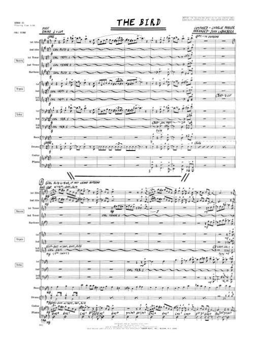 This adaptation of the Charlie Parker classic features a fast swing tempo and the bop-style lines you'd expect, but it also pays tribute to Bird by casting selected horns in intimate, combo-like settings within the full ensemble format. The solo work goes to lead alto, and alternating sax and brass solis culminate in a shout that takes this chart out strong.