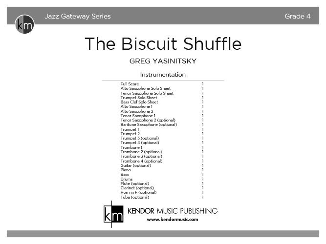 If you are looking for a a blues tinged shuffle that features all the sections of the band, you've found the right chart with The Biscuit Shuffle! The catchy riff that starts the chart is the figure that ties this piece together beautifully. There is a cool passage for the brass and saxes with light rhythm section figures that follows the solo section.