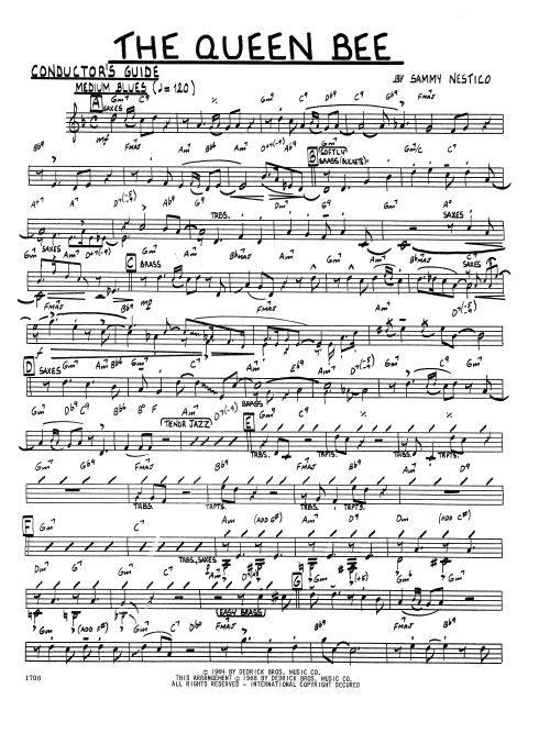 As recorded by Count Basie & His Orchestra for their Basie Straight Ahead album of 1968, this classic blues features a moderate tempo, piano and tenor solos, solid sax and brass solis, and a series of ensemble shouts punctuated by dramatically quieter passages to create the kind of intensity that keeps listeners riveted until the closing chord ends. Rhythm section parts are partially notated with chords cued, and the first brass soli calls for bucket mutes.