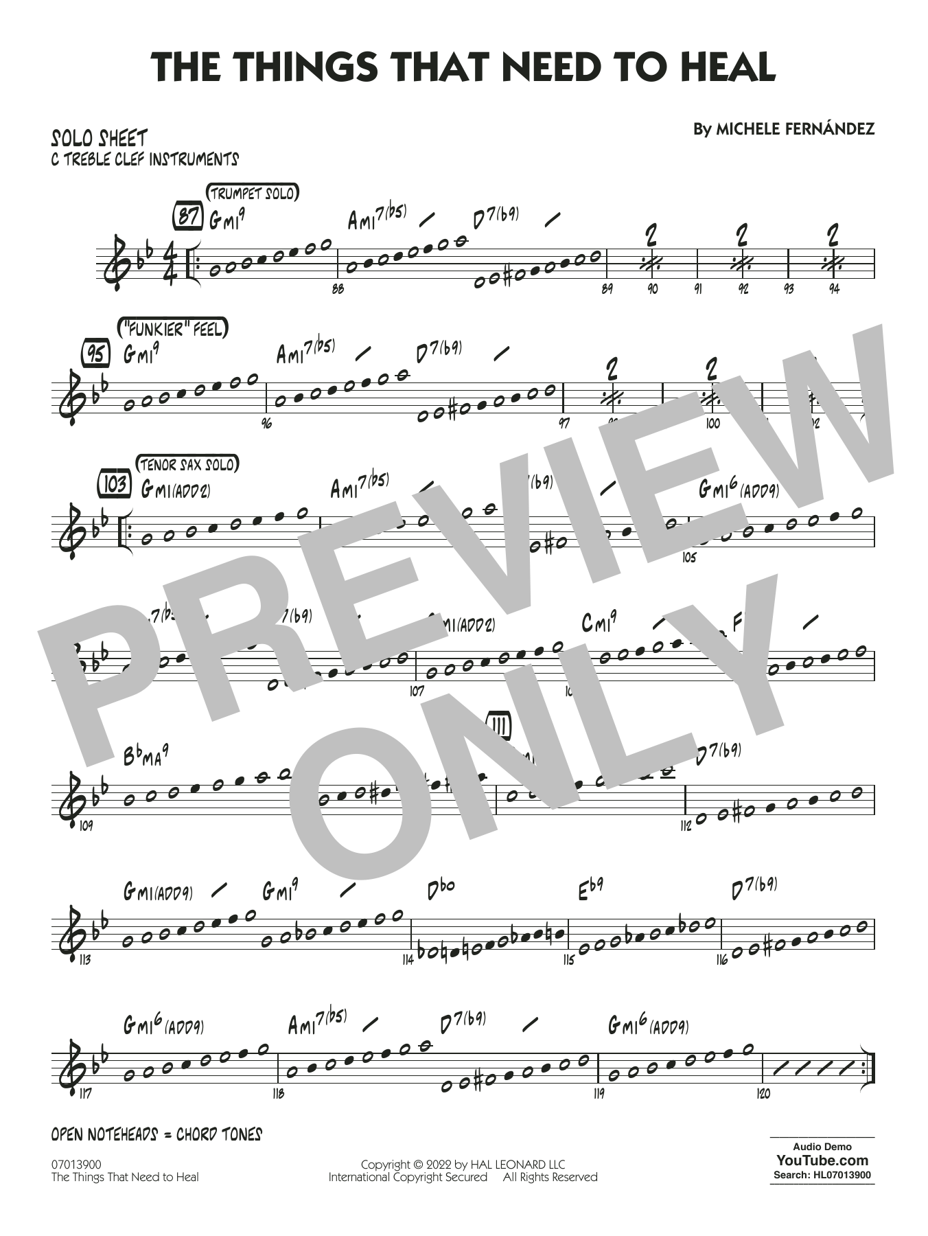Conveying a sentiment that we can all relate to, this masterful and poignant Bossa Nova features a sensitive, fully notated piano solo, richly scored horns, and solo options for both the novice player and also a more intermediate level. As with all of Michele's writing, the rhythm section parts are carefully notated to help take the guesswork out of attaining the correct Latin style.