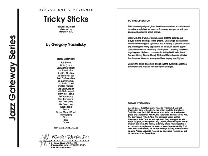 Here is a fun chart that provides the perfect vehicle to spotlight the unsung hero of the big band - the drummer. Mindful of the traditions established by such legends as Mel Lewis, Louis Bellson, Sonny Payne, Buddy Rich, and Harold Jones, great learning material is presented for developing groups by including a variety of textures and making effective use of softer dynamics, roaring ensemble work, and saxophone soli passages. Each set includes a guitar chord chart by Jim Greeson. Duration 4:50. Available in SmartMusic.