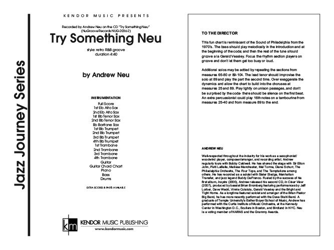 Your audiences will love this retro R&B original with an upbeat, infectious groove. Originally record by the composer on Try Something Neu (NuGroove Records NUG-2036-2), this chart is reminiscent of the "old school" Sound Of Philadelphia sound from the 1970's. Rhythm section parts are notated with chords cued, and a guitar chord chart by Jim Greeson is included. Duration 4:40.