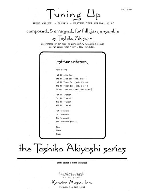 As recorded by the Toshiko Akiyoshi/Lew Tabackin Big Band on the album Road Time (RCA), this swingin' blues shuffle for experienced players has it all -- strong ensemble choruses, sax, and brass section solis, and solo opportunities for tenor sax, trombone, and two trumpets. The use of the optional woodwinds will enhance the overall sound, and a big finish adds the perfect finishing touch. Rhythm section parts are chords and slashes. Duration ca. 10:00.