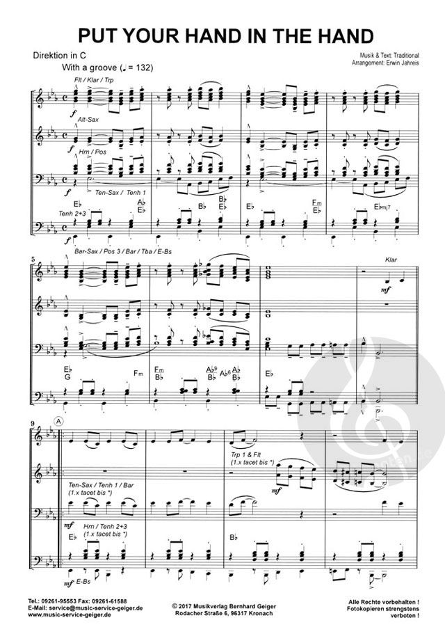 Bigband-Ausgabe (mit Gesang oder gemischtem Chor)