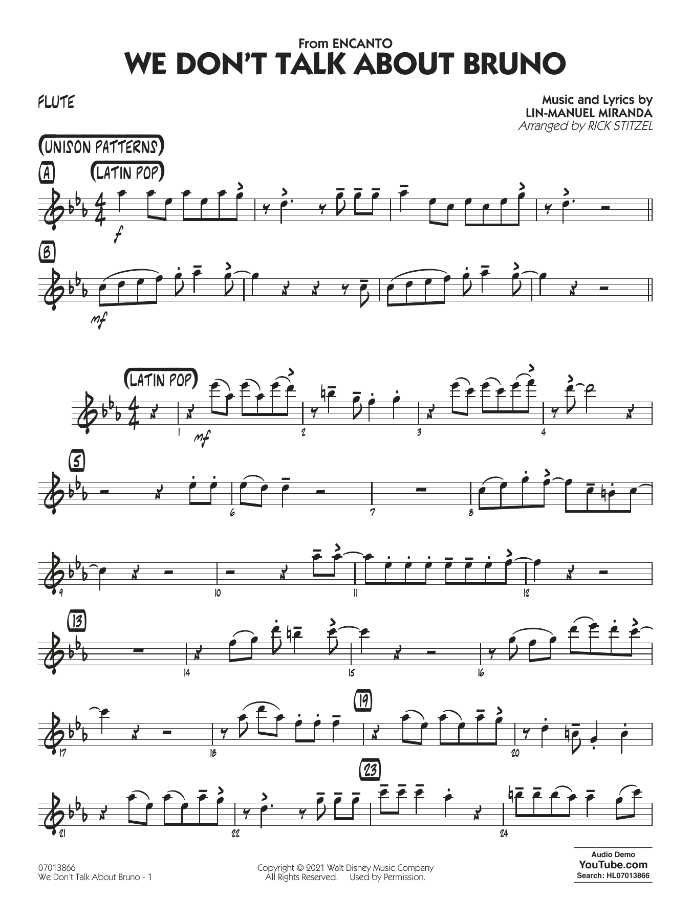 Ein Latin-Song aus einem Disney-Film ist natürlich wie geschaffen, um ihn mit Ihrer jungen Big Band zu spielen. Hier ist eine hervorragende Bearbeitung von Rick Stitzel, die keine Soli enthält und sehr leicht zu spielen ist.