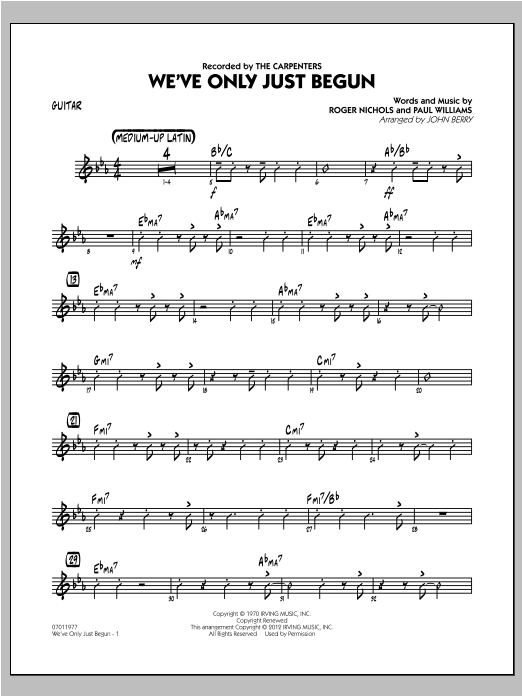 Recorded in 1970 and becoming one of the signature songs of The Carpenters, John Berry gives this tuneful classic a fresh take using an upbeat Latin groove and some nice harmonic substitutions. This smooth-sounding arrangement is an appealing way to revisit this well-known pop hit from the past.