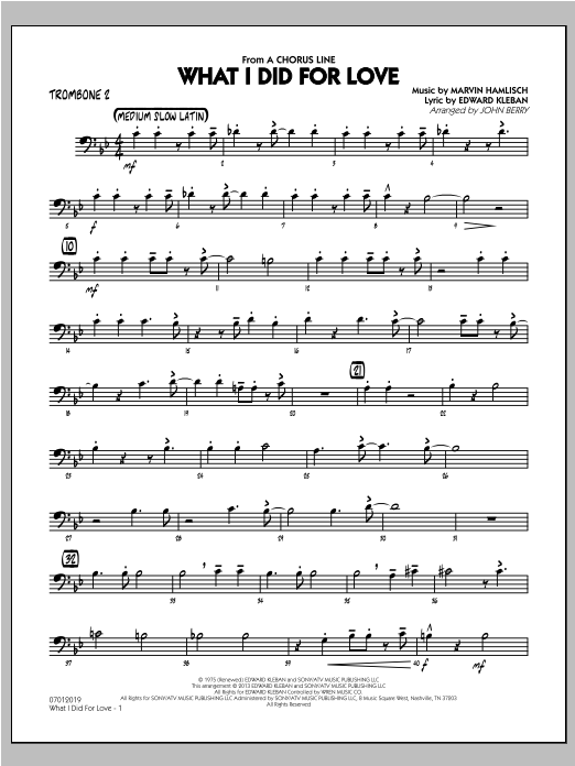 From Marvin Hamlisch's landmark musical A Chorus Line, here is the well-known ballad What I Did for Love in a creative and appealing setting for young bands. Written in a medium slow Latin style, it includes solos for trumpet and alto sax.