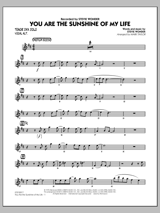 Aus dem Album Talking Book wurde dieser beliebte Stevie Wonder-Hit 1973 mit einem Grammy ausgezeichnet. Hier wunderschön arrangiert für Gesangssolo (oder Tenorsaxophon) mit ein paar zeitgenössischen Wendungen, ist dies eine großartige Ergänzung für jedes Programm.