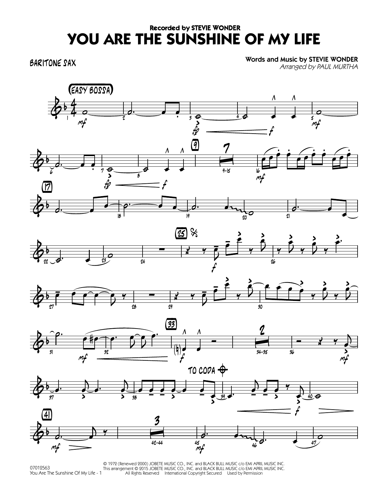 You Are The Sunshine Of My Life' ist einer der größten Stevie Wonder-Hits der 1970er Jahre. Die meisterhafte Bossa-Version beginnt und endet mit den Posaunen, dazwischen teilen sich Trompeten und Saxophone die Melodie.