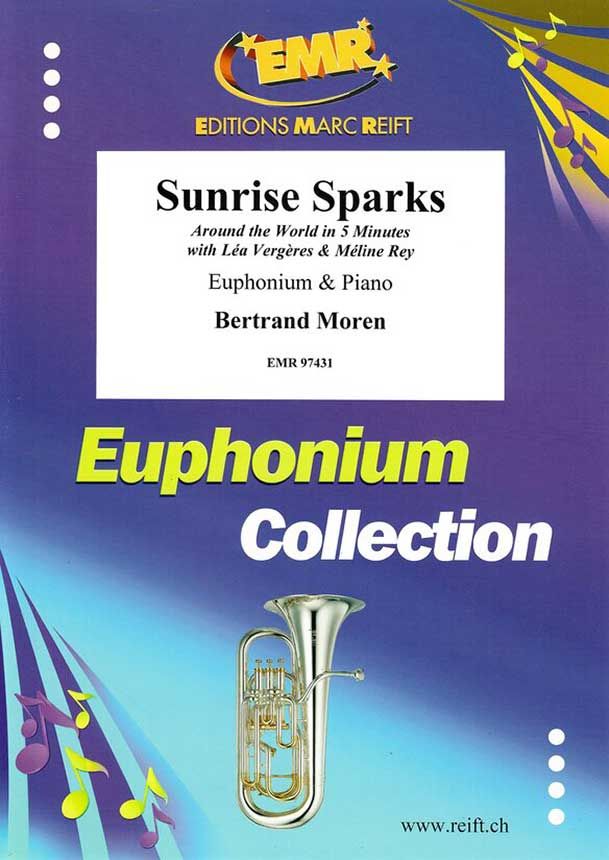 Sunrise Sparks ist ein Werk in fünf Sätzen, das als musikalisches Reisetagebuch konzipiert ist. Es wurde für zwei junge Cousinen geschrieben, Léa und Méline, die beide leidenschaftlich gerne Kornett spielen. Das Stück folgt ihrer imaginären Reise durch kontrastreiche Landschaften jede steht für eine Etappe ihrer Weltentdeckung. Die Reise beginnt mit "Takeoff", einem hellen, rhythmischen Auftakt, in dem die Aufregung des Aufbruchs in jeder Note spürbar ist. Der zweite Satz, "Camels in the Desert", entführt die Zuhörer in eine langsame, schaukelnde Wüstenwanderung unter glühender Sonne mit orientalischen Farben und geheimnisvoller Atmosphäre. Es folgt "Jungle Rush", ein lebendiger Tauchgang in üppige, dichte Vegetation, geprägt von energiegeladenen Rhythmen und pulsierender Perkussion. "Over the Ocean" bietet eine kontemplative Pause – ein Flug über das Meer, getragen von schwebenden Harmonien und lyrischen Linien. Zum Schluss bringt "Landing" das Werk zu einem virtuosen, energiegeladenen und leuchtenden Finale, in dem das Anfangsthema erneut erscheint diesmal jedoch umgekehrt. Die beiden Kornette antworten einander, verschmelzen, fordern sich heraus und ergänzen sich – wie zwei Freundinnen, die gemeinsam reisen, entdecken, träumen und Seite an Seite wachsen. Sunrise Sparks ist ebenso eine Hommage an das Reisen wie an die musikalische und menschliche Verbindung, die die beiden jungen Interpretinnen verbindet.