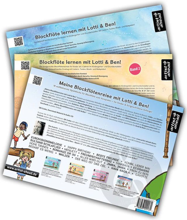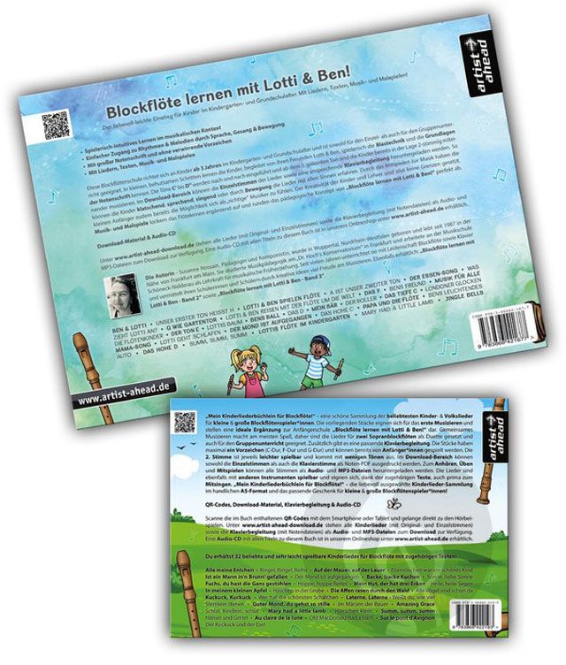 Scanne die im Buch enthaltenen QR-Codes mit dem Smartphone oder Tablet und gelange direkt zu den Hörbeispielen. Unter www.artist-ahead-download.de stehen alle Lieder (mit Original- und Einzelstimmen) sowie die Klavierbegleitung (mit Notendateien) als Audio- und MP3-Dateien zum Download zur Verfügung.