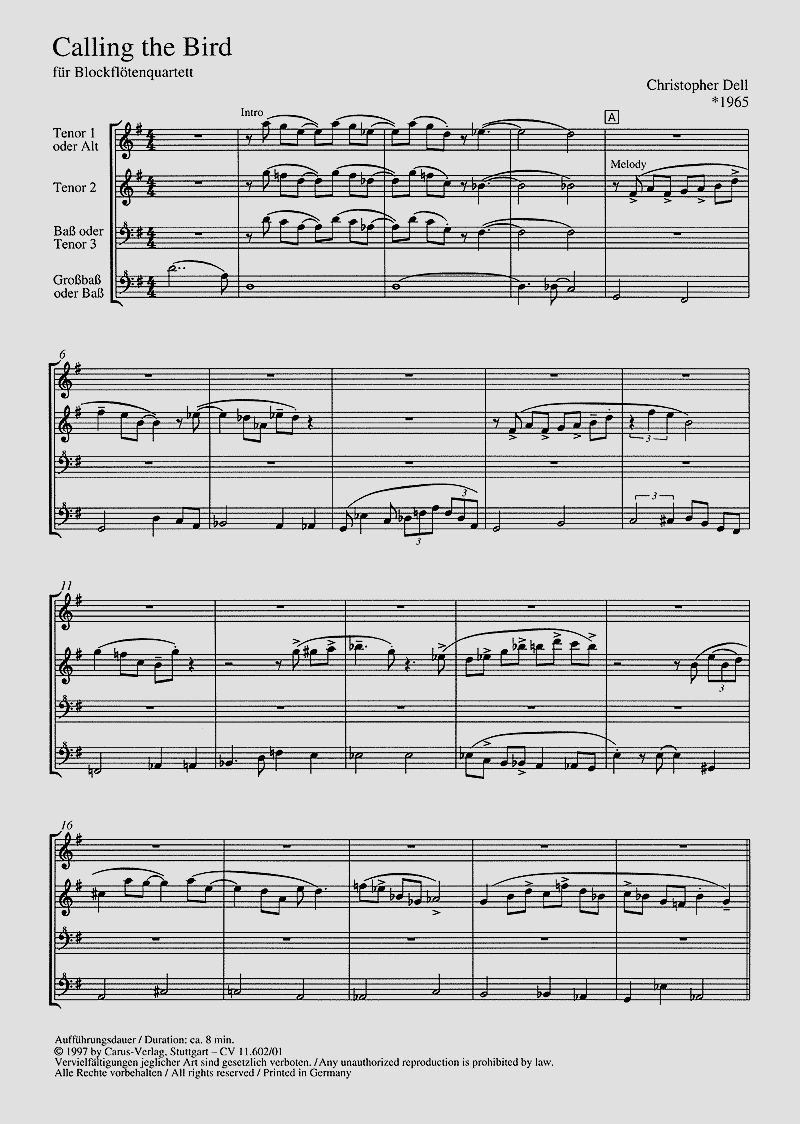 - Besetzung Blockflötenquartett (TTBB)
