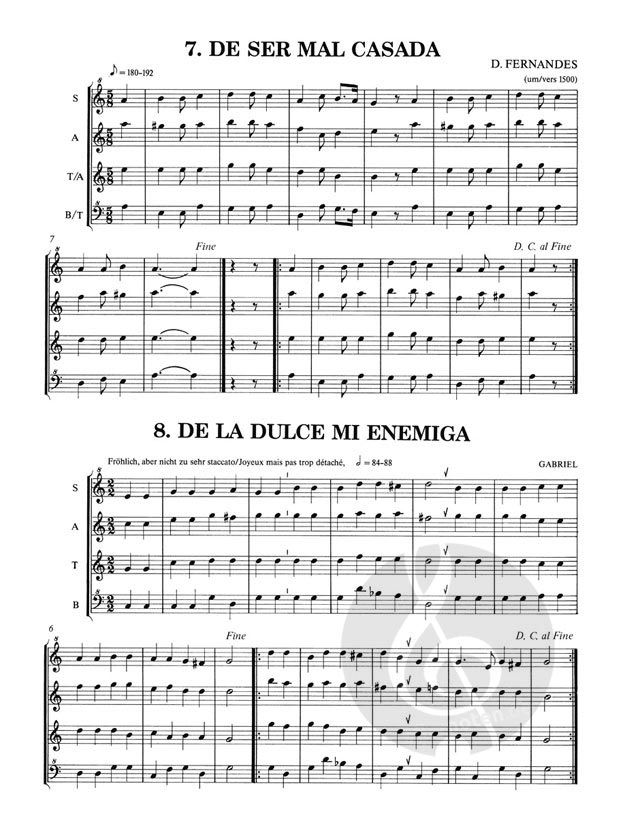 38 Kompositionen von Anonymen, Josquin, Phal(e`se, Senfl u.a. in Einrichtungen für Blockflöten. Sopran-Blockflöte in c, Alt-Blockflöte in f,g, Tenor-Blockflöte in c,d, Bass-Blockflöte in f - Spielpartitur
