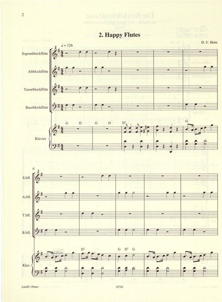 - Besetzung 4 Blockflöten (SATB) und Klavier