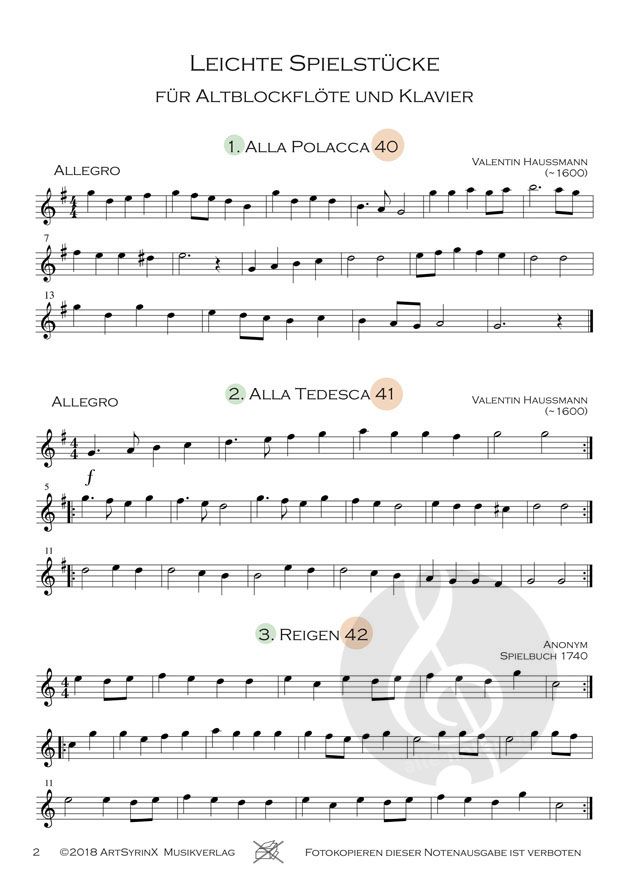- Besetzung Altblockflöte und Klavier