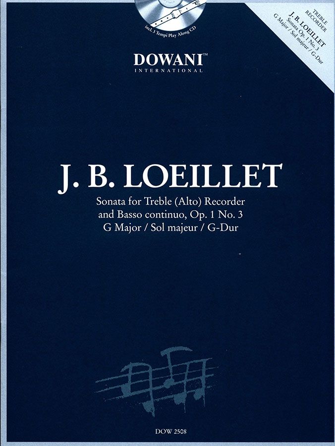Jean Baptiste Loeillets Sonate für Altblockflöte und Basso continuo op. 1 Nr. 3 in G-Dur ist im italienischen Stil komponiert und geht sehr gut auf den Klang der Blockflöte ein. Unsere Ausgabe ermöglicht es Ihnen, das Werk systematisch und in drei verschiedenen Tempi mit professioneller Begleitung zu erarbeiten. - Diese Ausgabe wurde von Manfredo Zimmermann, Professor für Blockflöte an der Musikhochschule Wuppertal und Spezialist für Alte Musik, herausgegeben und eingespielt. Solostimme + Klavierauszug + 1 CD