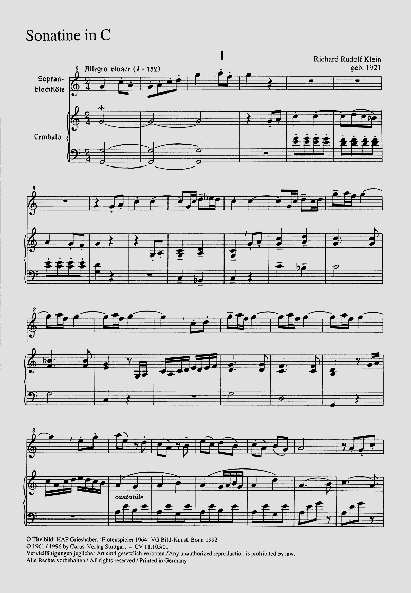 Blfl c2, Cembalo (Pfte) - Partitur mit einer Stimme