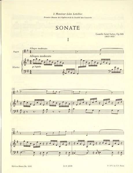 Ausgabe für Fagott und Klavier. Erstausgabe.