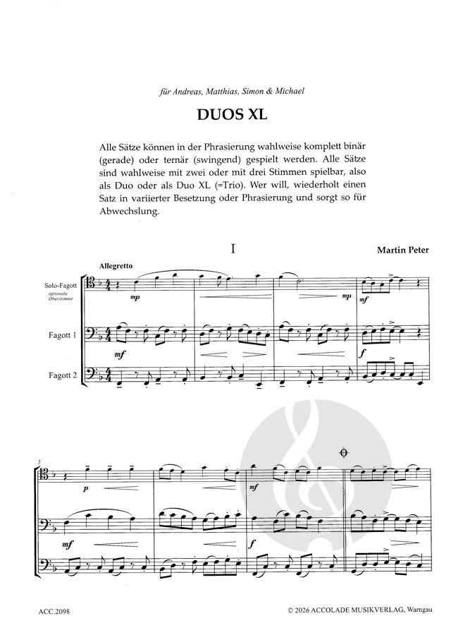 Für 1-4 Fagotte mit und ohne Klavierbegleitung.