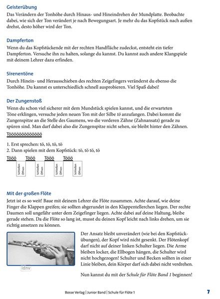Nach einer Einführung über den Aufbau des Instrumentes und der Erklärung der Atmung, werden schnell die ersten Töne erlernt und direkt in Liedern und Übungen eingesetzt. Die bildlichen Grifftabellen helfen beim Erlernen der neuen Töne. Neben Lektionen zum Rhythmus werden Grundlagen der Dynamik und der Phrasierung erlernt.