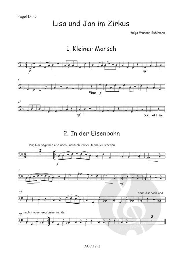 Lisa und Jan im Zirkus für Fagottino in F und Klavier
