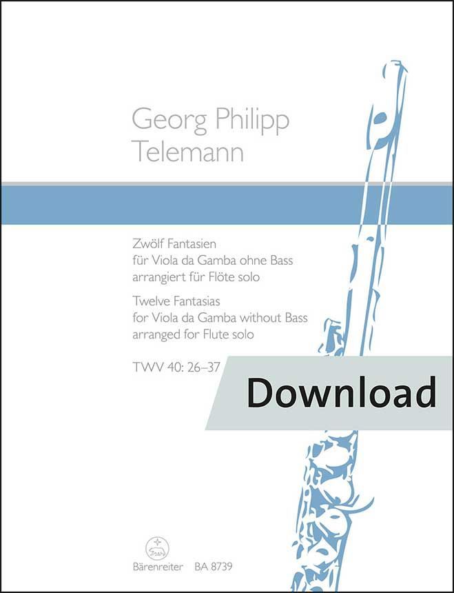 Für die vorliegende Ausgabe hat die Flötistin Leona Rötzsch diese Gamben-Fantasien arrangiert und damit die zwölf Fantasien für Flöte solo um ein weiteres Dutzend ergänzt. Immer in achtsamem Umgang mit Telemanns Tonsprache verwendete sie Transpositionen, Diminutionen und Akkordbrechungen auf geschickte Weise, um diese auf die Gambe zugeschnittenen Werke auf der Flöte spielbar zu machen.