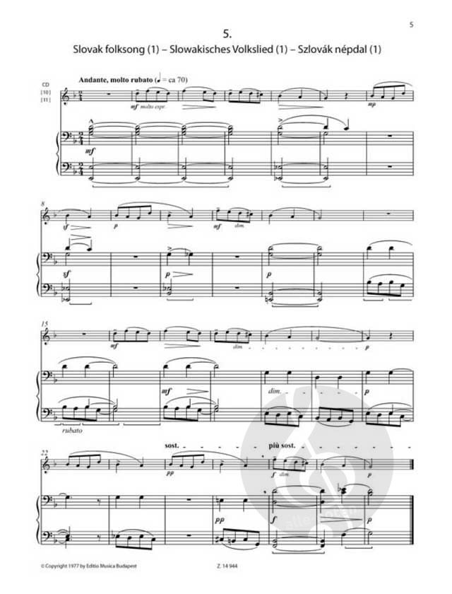 Dieses Album enthält Transkriptionen von Klavierstücken, die Béla Bartók (1881-1945) speziell für Musikstudierende komponierte (Zehn leichte Klavierstücke, Für Kinder, Die erste Zeit am Klavier). Mehrheitlich handelt es sich um Bearbeitungen ungarischer und slowakischer Volkslieder, ein kleinerer Teil basiert auf eigenen Themen des Komponisten, aber auch die einfachsten sind vollwertige, wirkungsvolle Vortragsstücke. Wir empfehlen das Album, dessen Stücke nach ihrem Schwierigkeitsgrad angeordnet sind, Flötenschülern der ersten drei Jahrgänge. Die ersten vier Stücke des Bandes lassen sich bereits im ersten Ausbildungsjahr spielen.