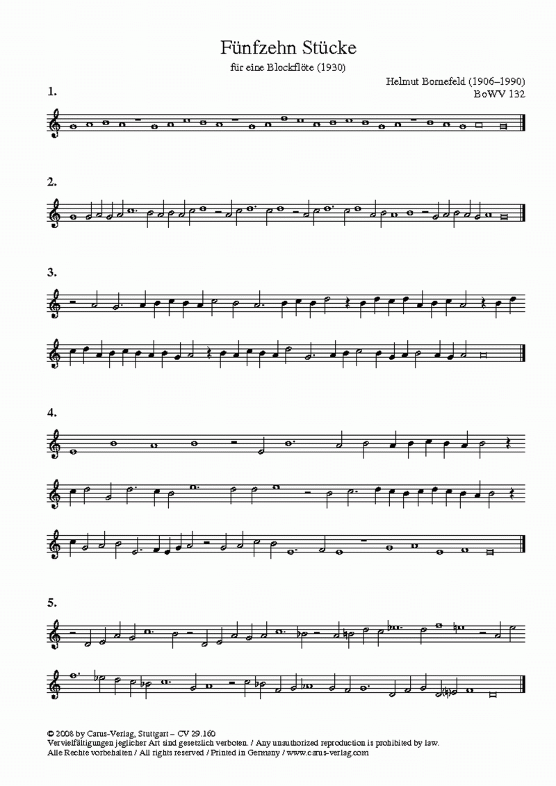 Die 15 Stücke waren von Helmut Bornefeld als Teil einer Schulmusik für Blockflöten konzipiert und sind entsprechend komponiert. Die Stücke sind für fortgeschrittene Schüler geeignet und bieten die Möglichkeit im Blockflötenunterricht auch mehrstimmig zu spielen.