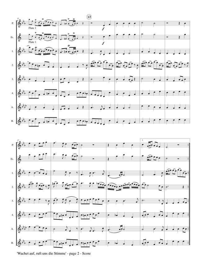 Aria and Chorale from Cantata BWV 140: 'Sleepers, Wake' This familiar Aria and Chorale scored for 8-part flute choir. Instrumentation: Piccolo, E-flat Flute (or C Flute), 4 C Flutes, Alto Flute (optional), Bass Flute (optional)