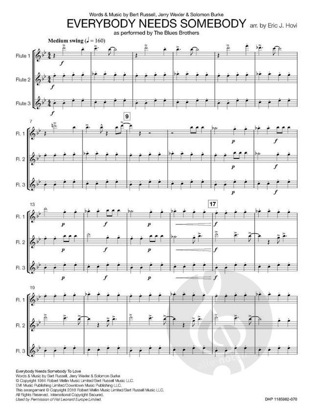 Schwarzer Anzug und Krawatte, weißes Hemd, Hut und dunkle Sonnenbrille: Das sind natürlich die kultigen Blues Brothers! Der Superhit 'Everybody Needs Somebody to Love' ist bei Jung und Alt beliebt. Diese einfache Version für drei Musiker eignet sich bestens, um eine spontane Party steigen zu lassen!