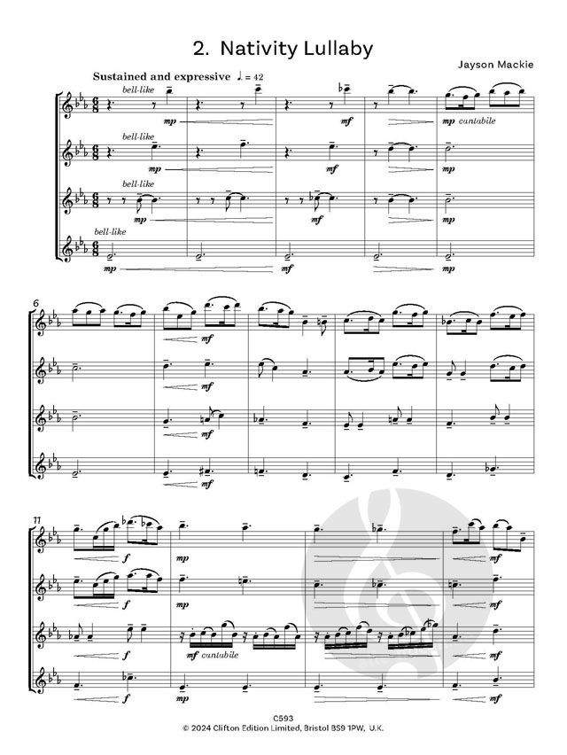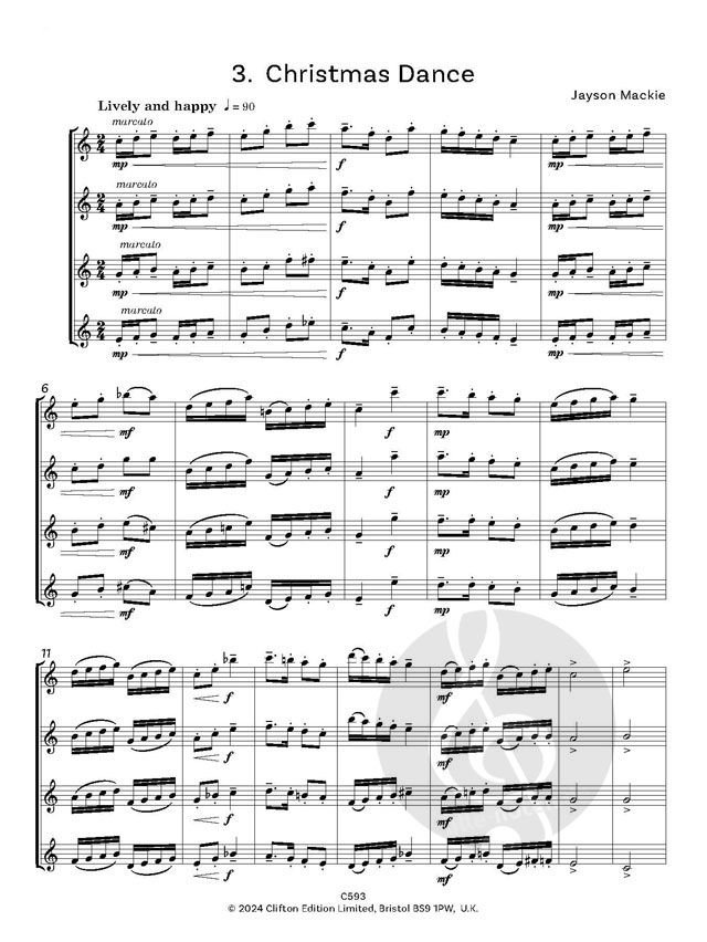 "Ich wollte eine Suite von kurzen, aber lustigen Stücken schreiben, die lose auf meiner Jazz-Suite-Reihe basieren - aber mit einem weihnachtlichen Touch. Ich wollte keine bestehenden Weihnachtslieder arrangieren, sondern einige originelle Stücke schreiben, die warm und weihnachtlich klingen. Die Suite wurde für das in Hampshire ansässige Flötenensemble Flute Salad geschrieben, dessen Mitglieder und Leiterin Louise Williams meine Flötenmusik wunderbar unterstützen."