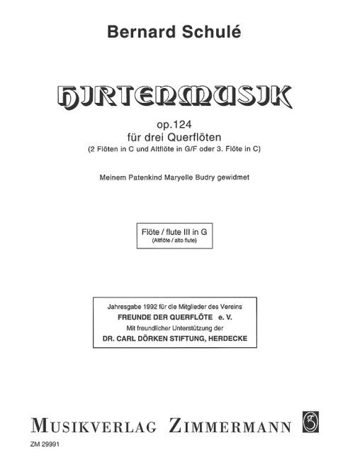 Jahresgabe 1992 für die Mitglieder des Vereins 'Freunde der Querflöte e.V.'