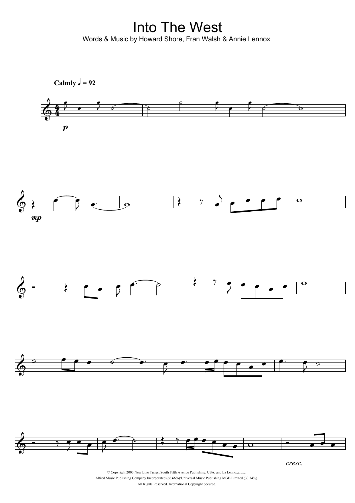 - Komponist Fran Walsh Annie Lennox Howard Shore