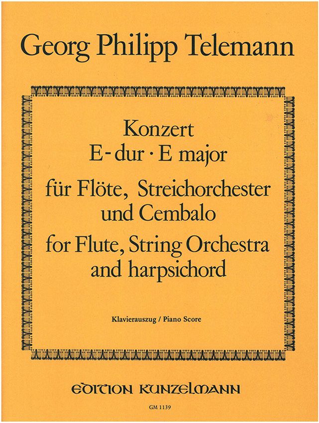 Das einzige erhalten gebliebene Flötenkonzert in E-Dur von Georg Philipp Telemann (1681-1767) ist in der handschriftlichen Partitur von Johann Christoph Graupner, aufbewahrt in der Hessischen Landes- und Hochschulbibliothek, Darmstadt, überliefert. Die Handschrift entstand um 1740. Der ursprüngliche Titel lautet: Concerto. a Flaut Tr. 2 Violis Viola e Cembalo. (Teleman). Bei der Edition wurde ein doppeltes Ziel angestrebt. Einerseits wollten wir in der Partitur einen dem Original am meisten entsprechenden Urtext vorlegen, andererseits aber den Text in dem Klavierauszug und der Flötenstimme so gestalten, dass er auch den Ansprüchen der Musiker entspreche, die ihn als Lehrmaterial benützen vollen. Das Konzert kann nämlich auch von Schülern gespielt werden, die, ohne über eine ausgereifte Spieltechnik zu verfügen, ein wirkliches, komplettes Werk des Barock spielen möchten. Dementsprechend sind die dynamischen und Artikulationszeichen in der Partitur an analogen Stellen ohne Bemerkung ergänzt worden, alle anderen Ergänzungen (einige dynamische Zeichen, Versetzungszeichen und Triller) stehen in eckigen Klammern. In der Flötenstimme des Klavierauszugs und auch in der selbständigen Flötenstimme sind aber die zum Vortrag nötigen dynamischen und Artikulationszeichen ohne Bemerkung ergänzt. Dadurch wurde erreicht, dass der Text des Klavierauszugs nicht überfüllt und besser lesbar ist; der Aufführende kann in der Partitur dennoch genau feststellen, welche Zeichen vom Herausgeber und welche aus der Quelle stammen. Es ist noch hinzufügen, dass die Dynamik reicher gestaltet werden kann und sogar sein soll, und dass Triller bzw. Ornamente auch an anderen Stellen verwendet werden können usw. Als eine einzige, scheinbar willkürliche Änderung des ursprüglichen Textes ist im ersten Satz zu finden, wo die mechanisch vorgeschriebene Forte-Dynamik in Mezzoforte verändert wurde, die dem Charakter des Satzes besser entspricht. Janós Malina