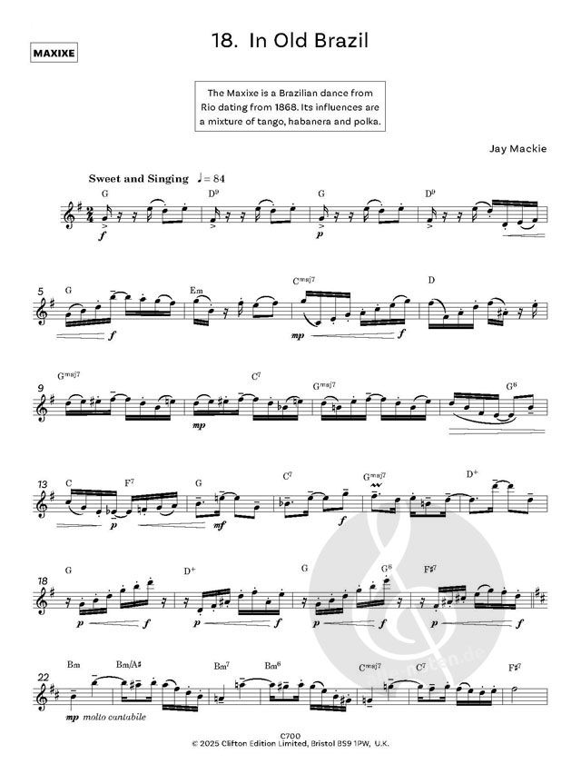 Lateinische Holzbläser sind berühmt für ihre Fähigkeiten in der hohen Oktave, daher habe ich diesen Bereich in viele Stücke aufgenommen, da dieser Bereich des Kompasses Ihres Instrumentes oft mehr konzentrierte Arbeit benötigt, wenn Sie die Notenstufen durchlaufen.