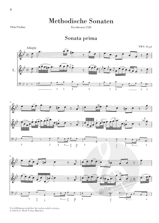 für Flöte oder Violine und Continuo