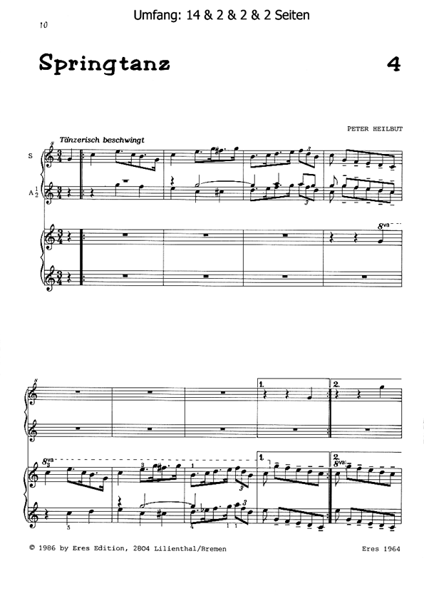 Norwegiana (Flöte / Blockflöte, Klavier) Drei Flöten/Blockflöten (verschiedener Stimmung) und Klavier nach norwegischen Tanzweisen1. Halling. 1S/2A/Klavier2. Rundtanz. 1S/1T/Klavier3. Wechselstrophen-Stev. 1A/Klavier (Mittelteil 2A -oder Piccolo-)4. Springtanz. 1S/2A/Klavier5. Halling. 2S/1T/Klavier6. Springtanz. 1A (Piccolo)/KlavierA=Alt / S=Sopran / T = TenorFür Flöten/Blockflöten und Klavier