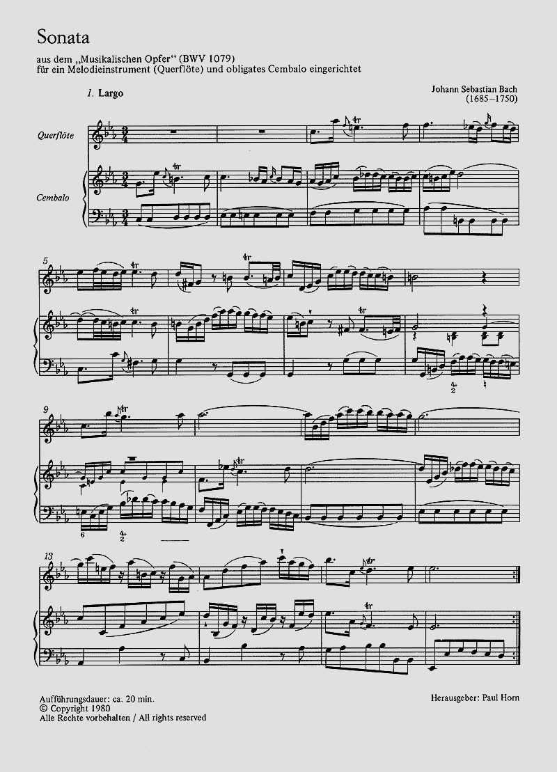 Fl, Cemb obl, [Vc] - Partitur mit 2 Stimmen