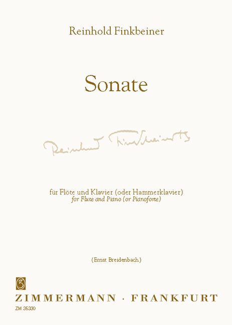 Der Werkkatalog des1929 in Stuttgart geborenen Komponisten und Organisten Reinhold Finkbeiner umfasst über siebzig Kompositionen, wobei die Orgelwerke eine gewichtige Position einnehmen. Seine Flötensonate entstand bereits 1953. Der Flötist Jens Josef, der die Sonate am 18. November 2004 in Darmstadt zusammen mit dem Pianisten Ernst Breidenbach uraufführte, schreibt im Vorwort: '... Durch die sehr intensive kontrapunktische Arbeit, die der Sonate einen stetigen musikalischen Fluss verleiht, gelingt es dem Komponisten, seine Themen und Motive durch teilweise geringe rhythmische Umakzentuierungen immer neu und erfrischend zu belichten. ... Den klassischen Qualitäten der Flöte - Anmut, Virtuosität und geschmeidiger Klang - wird in reichem Masse Rechnung getragen, doch werden sie mit einem komplexen musikalischen Satz und einem sehr eigenen Humor konfrontiert. Diese Mischung ist zweifellos eine besondere, weil ganz eigene Qualität des Werkes.'
