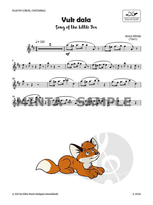 Péter Wolf (*1947) ist ein Komponist mit einer farbenfrohen Palette, der in vielen Genres, von der Konzertmusik bis zur Tanzmusik, gleichermaßen zu Hause ist und für seine denkwürdigen Beiträge vielfach geehrt wird. Seine Filmmusik zu Attila Dargays Zeichentrickfilm Vuk aus dem Jahr 1981 ist seit der Premiere bei allen Generationen bekannt und beliebt. Wir stellen das Lied des liebenswerten Fuchswelpen in Transkriptionen vor, die der Komponist zur Freude der jungen Musiker erstellt hat.